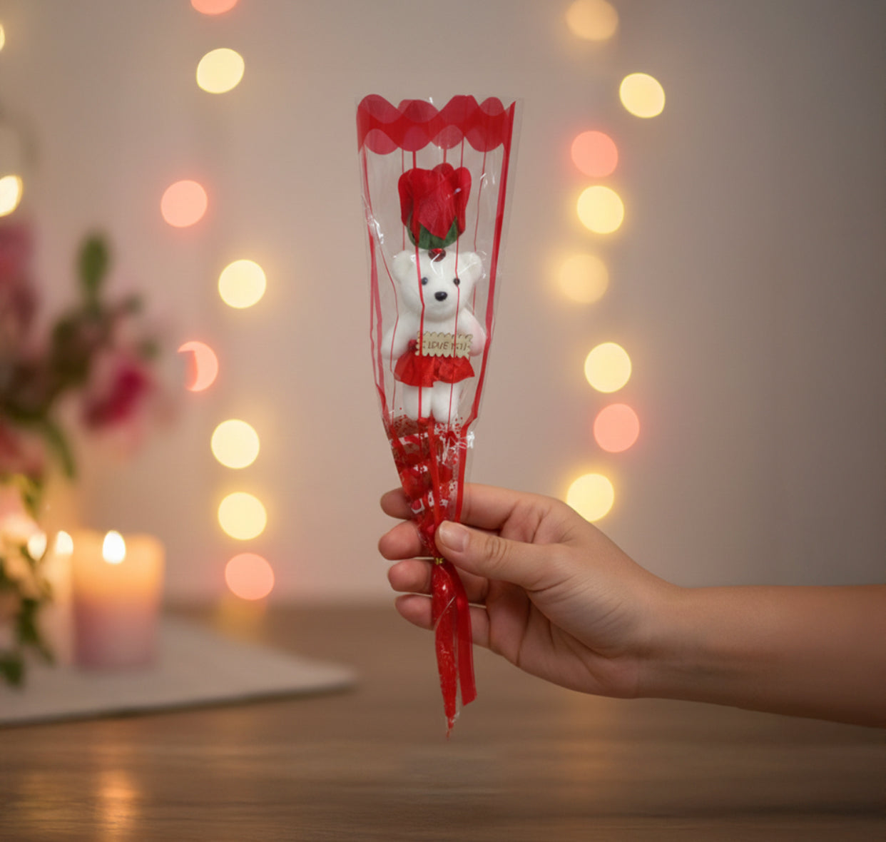 Teddy and Artificial Rose Stick